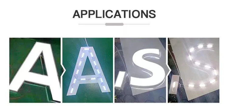 - साइन बोर्ड बैकलाइटिंग, चैनल लेटर्स बैकलाइटिंग में व्यापक रूप से उपयोग किया जाता है