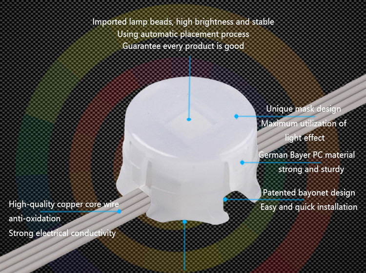 | प्रमुखता देना | आउटडोर RGB LED पिक्सेल लाइट,SMD5050 20mm LED पिक्सेल लाइट,DC05V IP67 LED पिक्सेल लाइट |